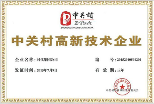時代集團公司、時代之峰科技有限公司、時代科技股份有限公司喜獲中關村高新技術企業認定證書