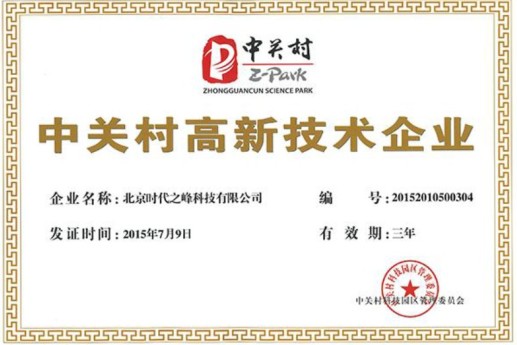 時代之峰科技有限公司喜獲中關村高新技術企業認定證書